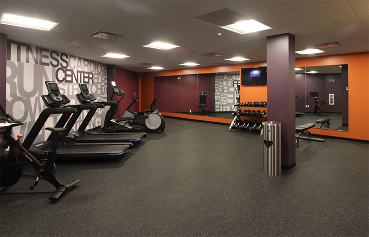 I worked with the branding company and architect to create a glass privacy design and a mural for the fitness center.