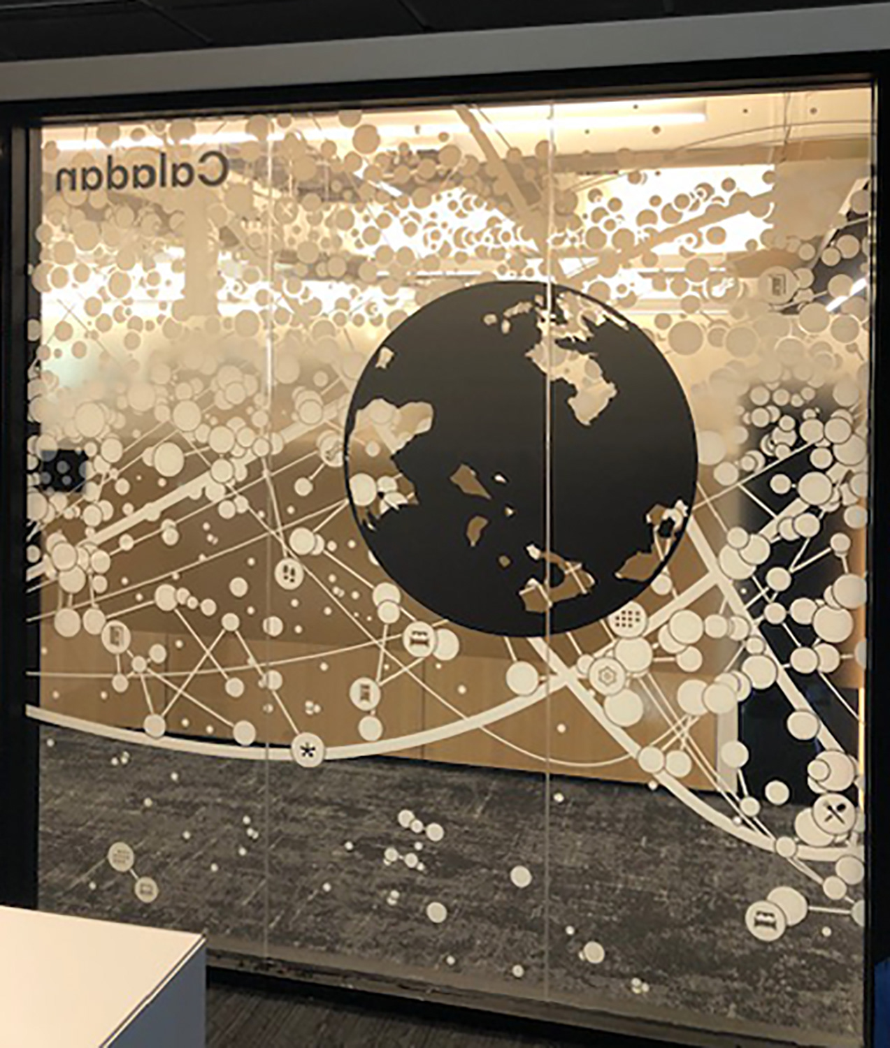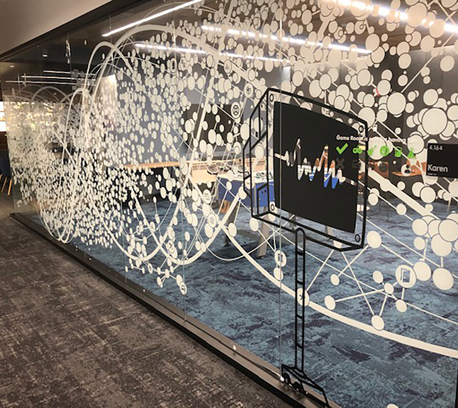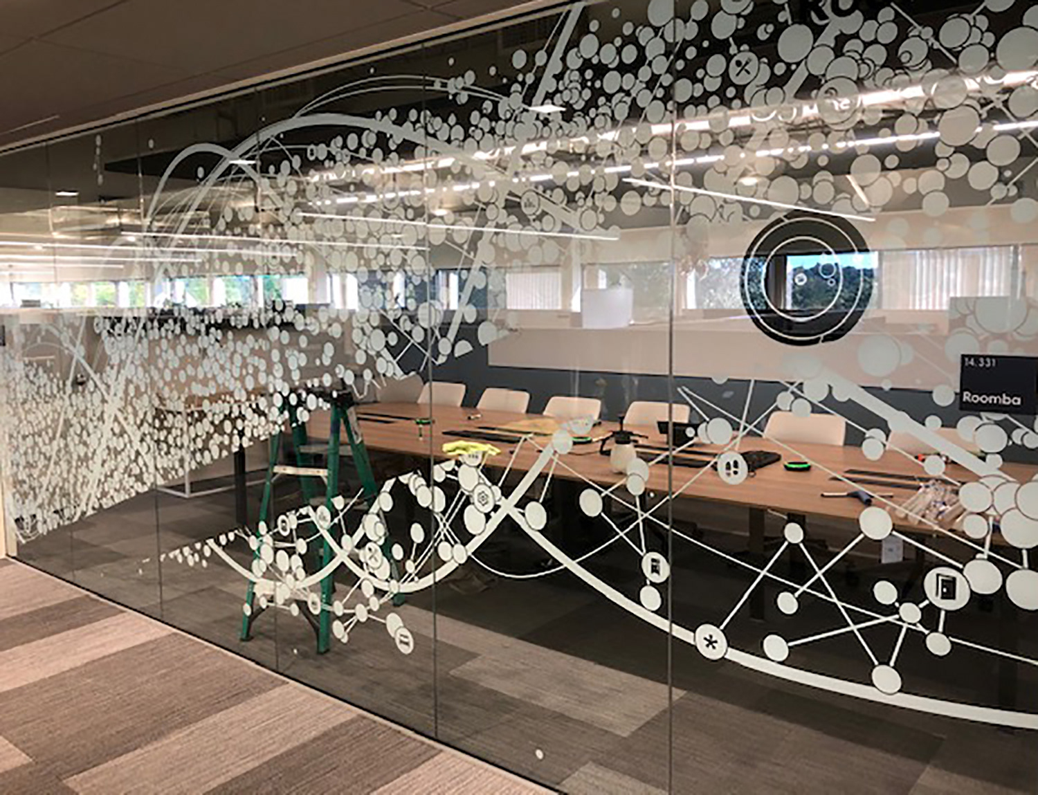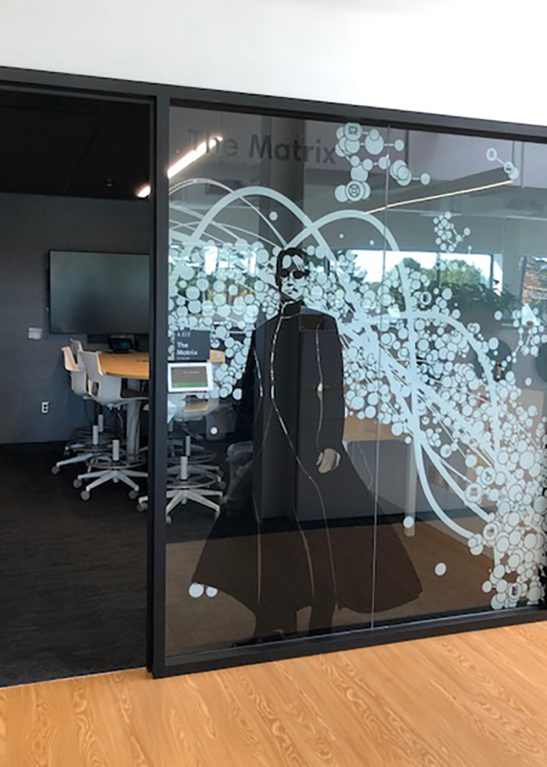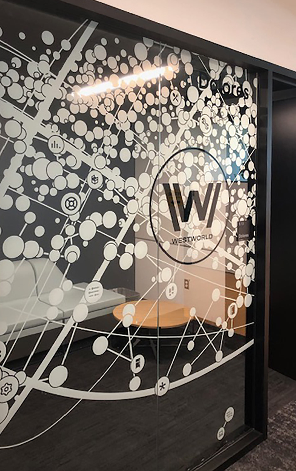 I worked with the branding company and client to illustrate characters to correspond with the room names as part of the glass branding.