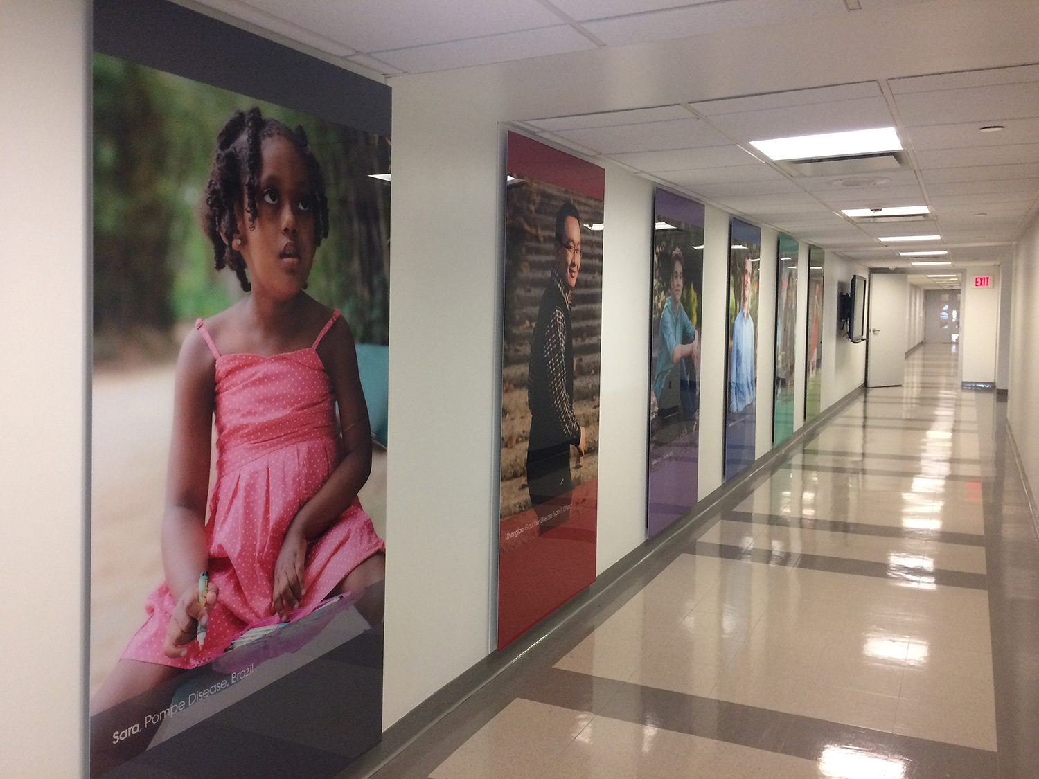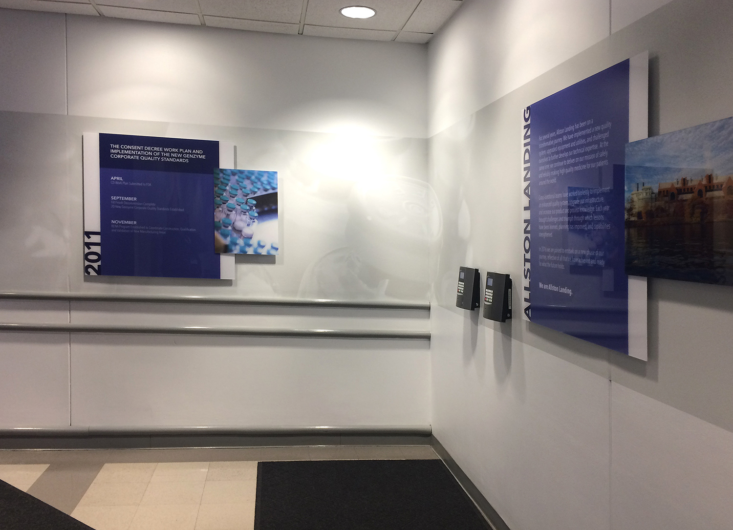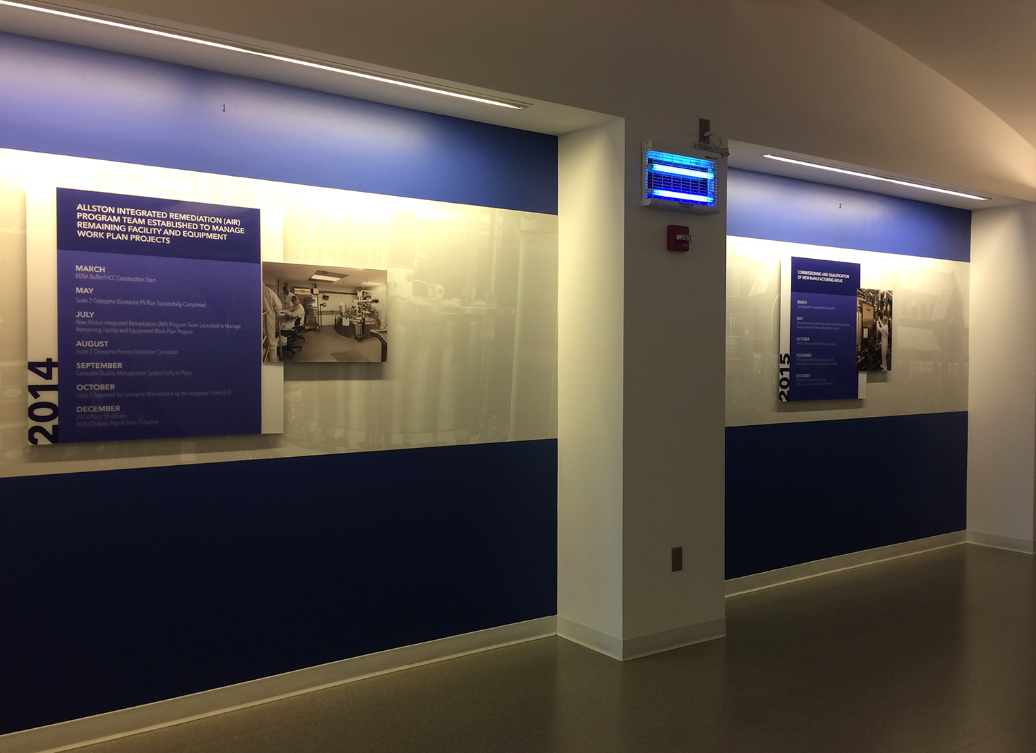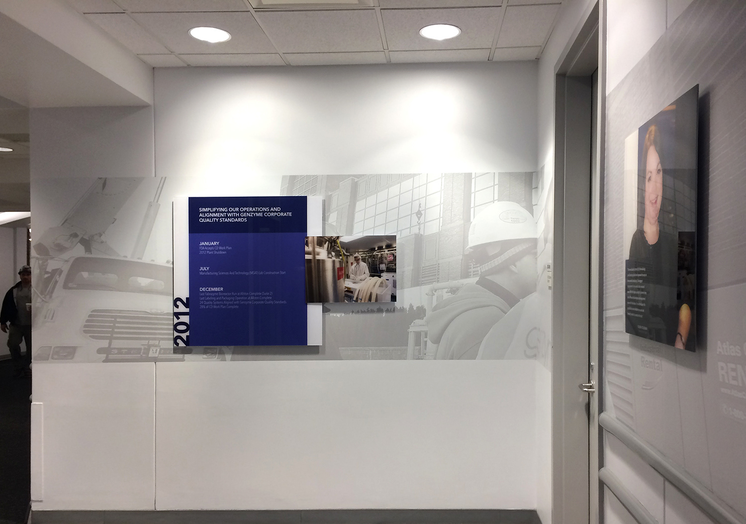 I worked with the client to rebrand the facility in Allston. This including new graphics for the lobby with the mission statement, a history timeline and patient story graphics. These elements were carried through other facilities.