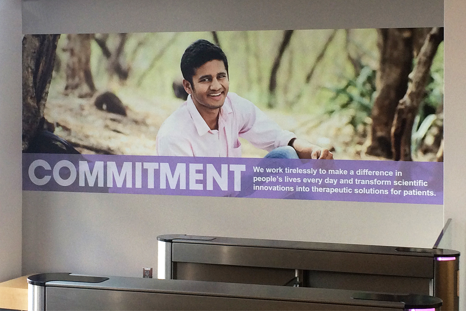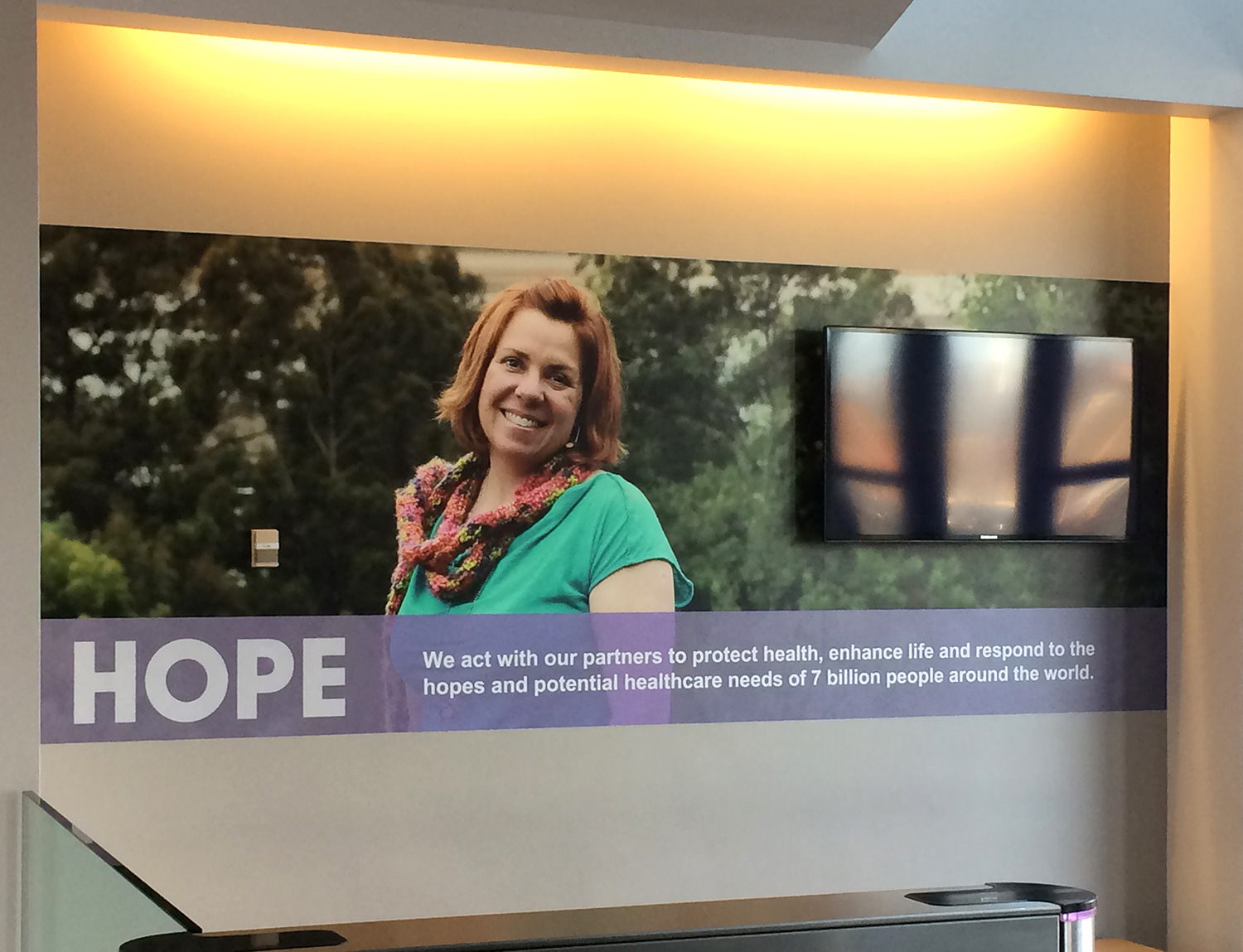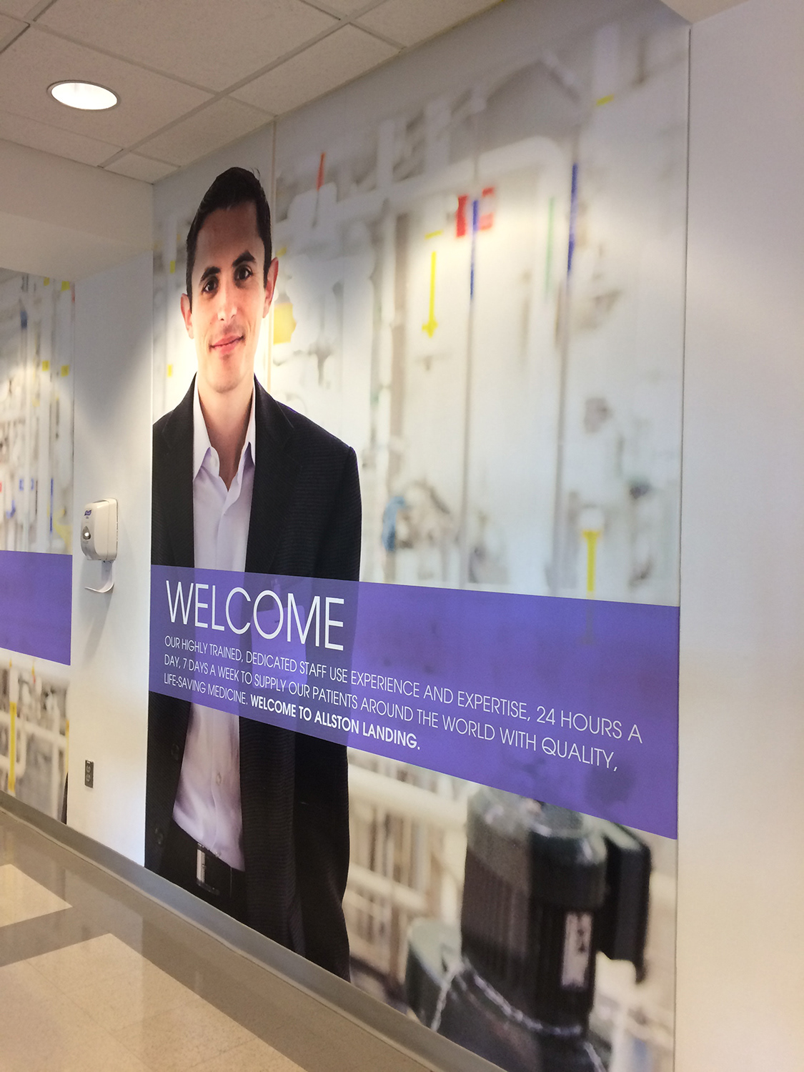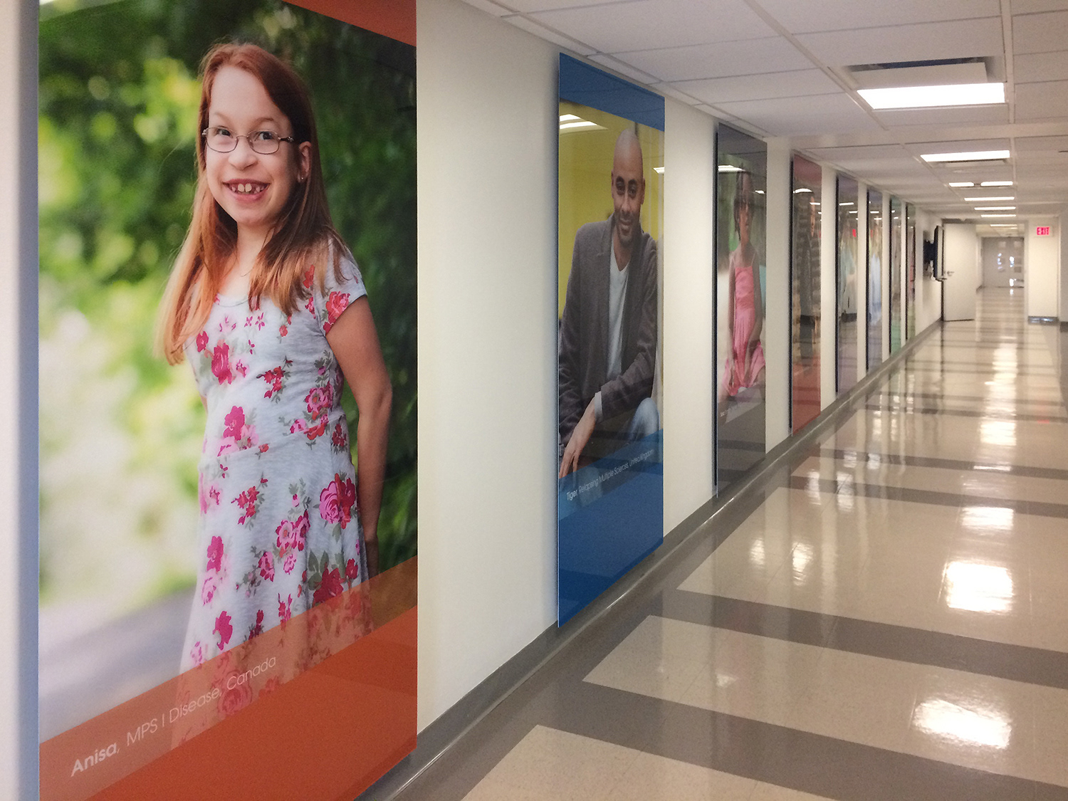 I worked with the client to rebrand the facility in Allston. This including new graphics for the lobby with the mission statement, a history timeline and patient story graphics. These elements were carried through other facilities.